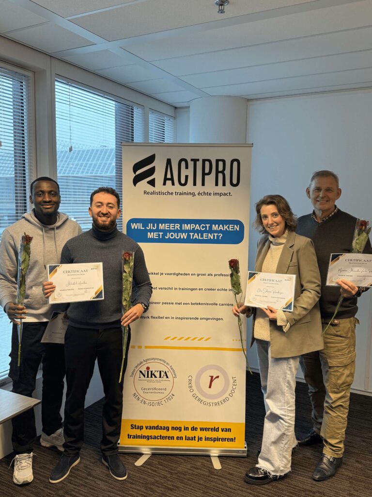 Bij Act Professionals zijn we trots op het leveren van hoogwaardige trainingen die écht impact maken. Onze deelnemers verlaten de training met praktische vaardigheden, zelfvertrouwen en effectieve technieken.